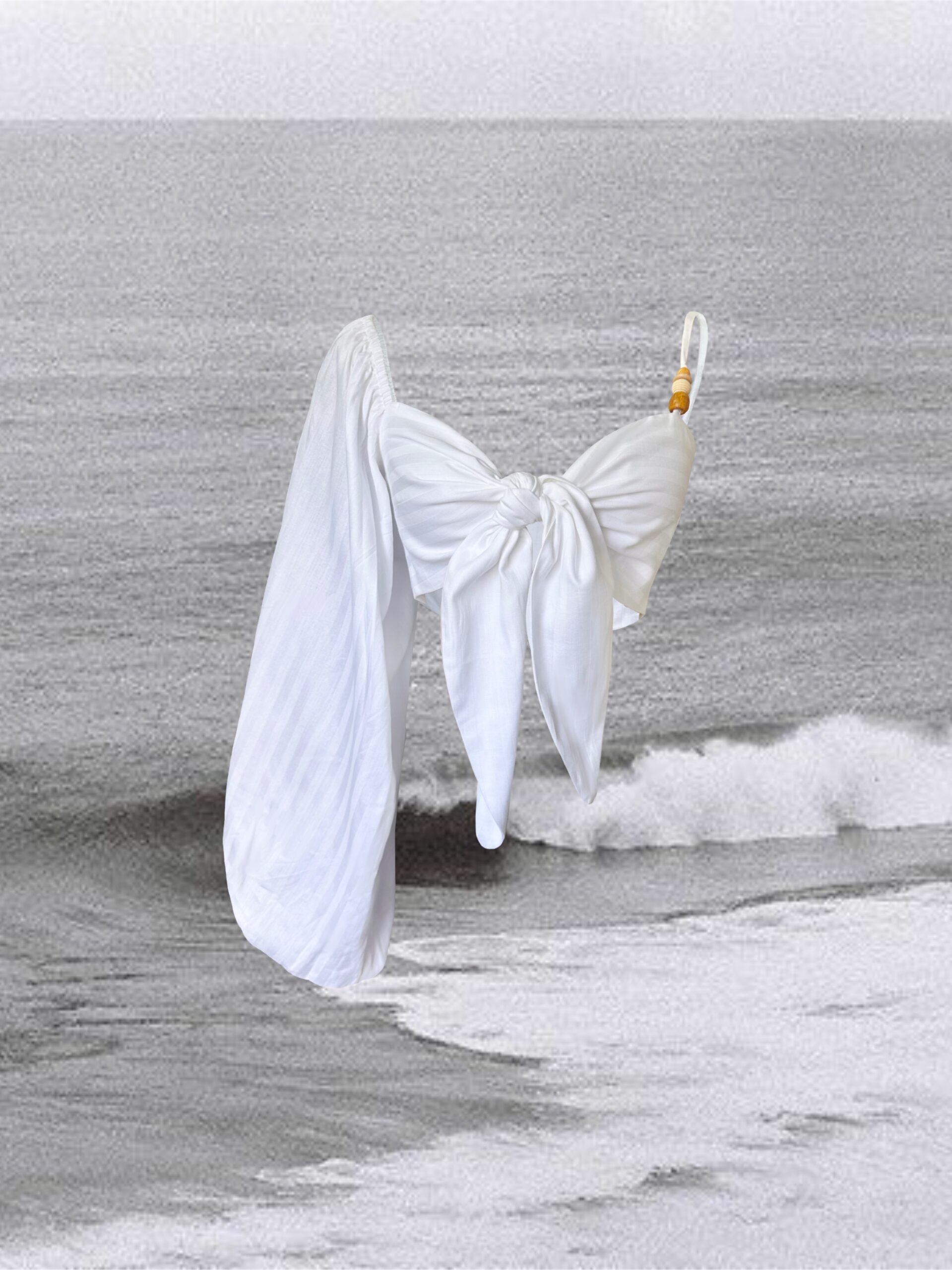 ASYMMETRICAL TOP FEATURING A PUFF SLEEVE ON ONE SIDE AND AN ADJUSTABLE STRAP ON THE OTHER, CRAFTED FROM COTTON FABRIC WITH BEADED DETAILS ON THE ADJUSTABLE STRAP FOR A UNIQUE AND STYLISH TOUCH